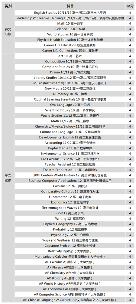 枫叶世界学校课程包括英文课程、中文课程、汉语语言课程和英语语言课程四大板块,是枫叶教育在20余年实施教学基础上,由枫叶中外教育专家、教师团队历时5年研究开发而成。枫叶世界学校课程是枫叶在全球构建学校网络中使用的通用课程。