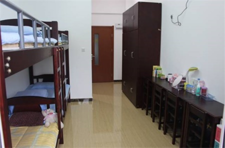 四至十年级学生宿舍床铺为上下铺实木床,也是四人一间哦。