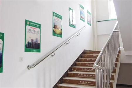 楼层内淋浴室,干净的走廊,楼梯文化,宿舍文化布置别具一格,校医24小时间为学生提供服务。