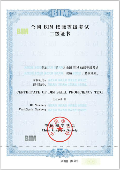 通过“全国BIM技能等级考试”后,将获得由国家人力资源和社会保障部教育培训中心颁发《培训证书》和中国图学学会《全国BIM技能等级考试证书》双证书。