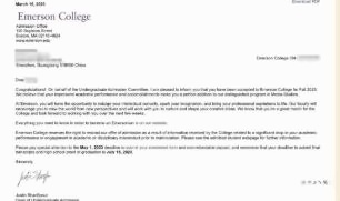 近日,我校中六班学子获得了美国艾默生学院(Emerson College)的无条件录取!